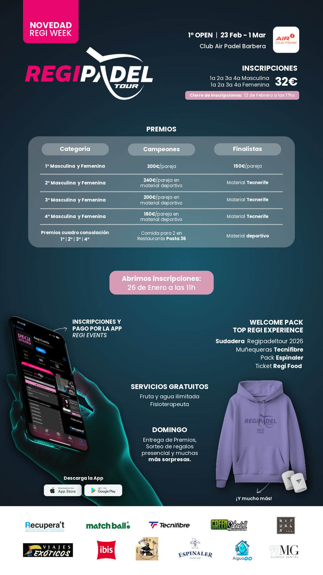 ¡Te esperamos en el 1er Torneo Open del circuito Regi Padel Tour 2026, un torneo lleno de emoción, premios increíbles y diversión asegurada!